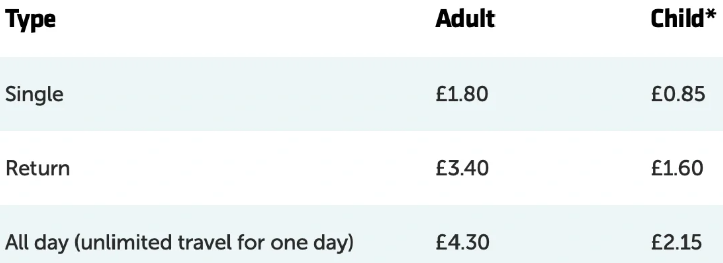 日票(自然日票):4.3镑 一个自然天内无限次乘坐