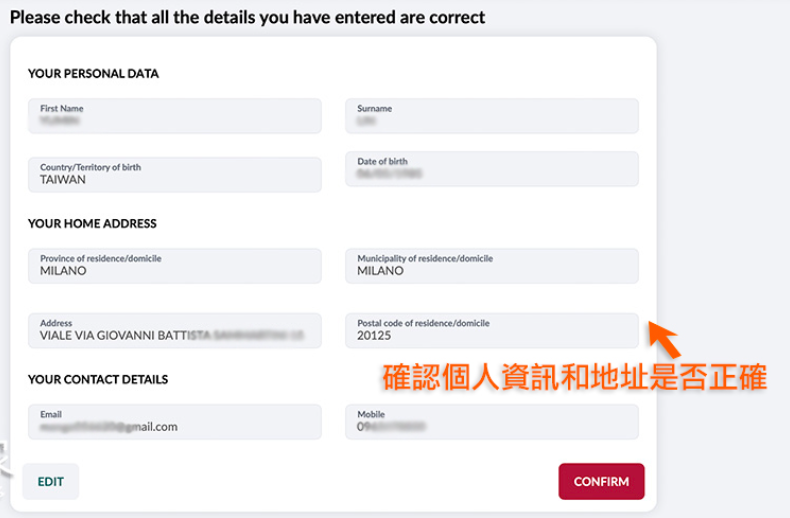 4、请检查您输入的所有详细信息是否正確,確认上方全部的资料都正確无误后,就可以按CONFIRM进入到下一步。