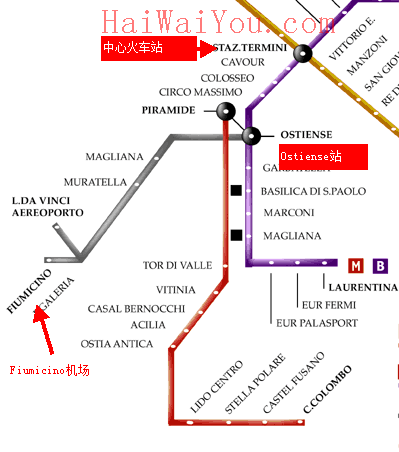 如果莱昂纳多快车太贵,或者您不急于前往罗马,那么另一种选择是乘坐为机场提供服务的地区 FL1 列车。可以在同一车站搭乘这些火车,并且将在罗马的特拉斯提弗列(Trastevere)、奥斯蒂安塞(Ostiense)、图斯科拉纳(Tuscolana)和蒂布尔蒂纳(Tiburtina)车站停靠。由于这些额外的停靠点,旅程将花费近 1 小时,而乘坐 Leonardo Express 前往特米尼车站大约需要 30 分钟。但好处是这些车站可能比特米尼车站更靠近您的目的地,因此乘坐区域列车可能是最方便的选择。需要转地铁才能到达市中心。可以买到Ostiense的票,在Ostiense站下了车,很容易发现蓝线地铁的标志,即B 线,跟着走,距离有点长。到了车站,选择 Rebibbia方向,Termini站下车,即中心火车站。也可以在Tibutina车站下车,再转乘蓝线地铁B线的列车。
