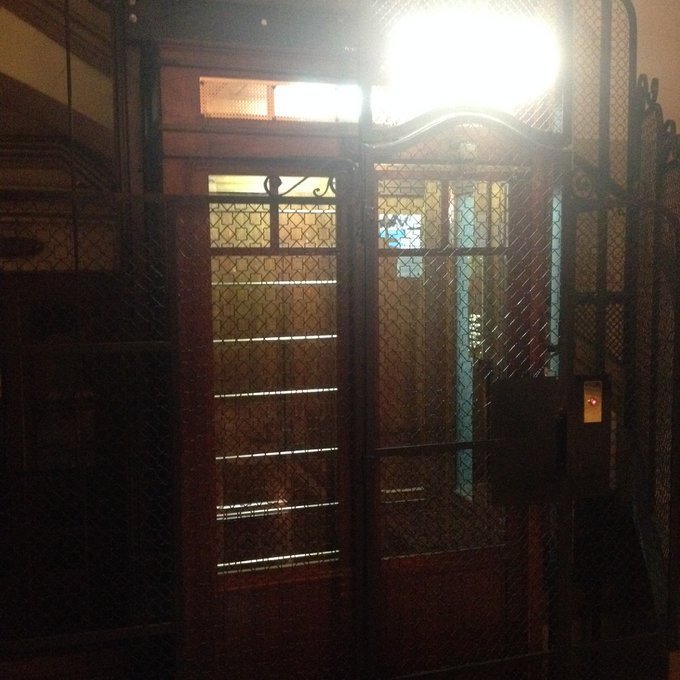 一道铁艺门一道木门的老式小电梯(我的爱)