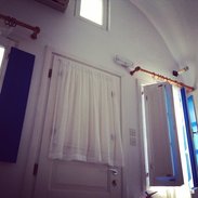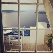 这家宾馆的无敌海景征服了我,虽然它房间的内部设施有点陈旧简陋,但是门外的海景真是惊得我连连大叫。每天早上起床打开房门,看到的就是爱琴海,感觉画面特别不真实,处处都好像一幅画,真心美。 这家宾馆位置有点难找,处于悬崖边,私密性挺好。最大的缺点是,房间水很小,每次洗头洗澡什么的都会怕突然断水。我不知道是不是只有我这间房间水小,还是其他房间有一样的状况。房间有自带的小厨房,老板送了一瓶矿泉水,还有两瓶饮料。 经验分享:关于圣托里尼岛住宿 Fira费拉镇是整个圣岛最为繁华的小镇,医院、邮局、购票中心,都位于费拉。交通也最为方便,无论去哪个地方都可以在费拉坐公车前往,无需转车,可以将第一晚住宿选择在这里。 Imerovigli镇 被称为是圣岛的阳台,想看无敌海景的同学,选这里绝对没错。小镇很安静,没有太多的游客,这里的房价比OIA要稍微便宜点。 OIA应该算是圣岛最著名的景点小镇了。整个小镇都堪称为精华,但是房价略高,交通也不是特别方便,去岛屿的南部沙滩之类的地方,都需要先坐公交到费拉。 Firostenfani镇风景跟Imerovigli镇差不多,都是无敌海景,是个比Imerovigli镇还要安静的小镇,但是个人觉得还是交通不方便,适合于每天喜欢在宾馆阳台上看看海景晒晒太阳的同学。 海滩附近的宾馆,房价比较低。海滩边上也有很多餐馆,物价比镇上低,而且出门就是海滩,比较适合喜欢每日去海边溜达晒太阳的同学。 希腊的住宿貌似都可以发邮件跟宾馆老板砍价,一般都可以拿到10欧左右的折扣。我是个嫌麻烦的人,当时查宾馆,觉得价格都在合理范围内,也就没有发邮件问老板,直接就在网站上预定了。 提示: 欧洲酒店都不提供牙刷和牙膏 但是大多酒店都有沐浴露和洗发露 但是有些酒店只提供小肥皂 所以以防万一你还是自己都带上吧。