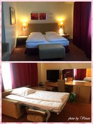 距离裤裆大街不远,很现代的装饰。房间很大很干净,一个双人床,还有个沙发可以打开,三个人住不觉得挤。有自己的停车场,20欧/天。吃早餐才发现这是家入住率超高的酒店,人特别多,早餐很好,样式很多。员工都很热情友好,上楼需要刷房卡,比较安全。