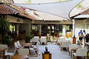 这次公司活动的地点是hyatt regency hotel. 酒店位于阿鲁巴岛西岸的棕榈滩(Palm Beach),这里是岛上主要的观光客集中地,以长达10公里的连续白色沙滩与海边的度假屋著名,又有蓝绿色海岸(Turquoise Coast)的美名。这里的酒店普遍价格很高, 我们当时查了一下 agoda, 这个酒店每晚的价格是600美金左右,简直是打劫啊。 酒店用早餐,总是充满了一些期盼和向往。失望的是这里的早餐主要是美式的,唯一有当地气息的是几种辣酱,味道很赞,就在这一天我们发明了一种吃法就是Omelette配上这里的辣酱,有种吃鸡蛋灌饼的感觉,难道不是嘛!