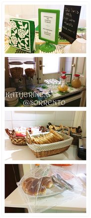 酒店名称:Palazzo Starace Relais 推荐指数:★★★☆ 房价(含早餐):358欧/2晚/4人(可以刷卡,但城市税要付现金),城市税:1.5欧/人/晚。小公寓地理位置很好,距离中央广场和悬崖都很近,距离码头港口步行10-15分钟,坐船去卡普里岛相当方便。公寓修缮良好,没有电梯,但有负责运输行李的铁箱,可以吊上去到你住的楼层,哈哈哈哈!前台是位男士,不知道是不是这里的男主人。人比较友好,如果你问前往波西塔诺的大巴时刻表和去卡普里船的时刻表,他会细心的打印出来,并推荐你坐便宜时间又何时的那班。不过当晚他推荐了一家餐厅,给我们印象可不大好,细节在美食篇中再提及吧,就不在此啰嗦了。早餐虽然没什么特别,但也算很丰盛,毕竟是家小公寓。就是网络不太好,4人间只有靠近大门的主卧有信号,套间没有信号。洗澡水只是第一晚不太好,第二天早晨和晚上都没有问题了。