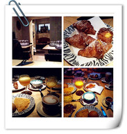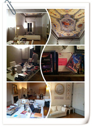 酒店就是这座在外面看不起眼儿的大宅。整个宅子静悄悄的,好像除了我们没别人住。之前订了两个房间,接待的姑娘不好意思地告诉我们其中一个房间的水管坏了,询问我们四个人是否可以住在一个大套房里。或是帮我们再找一间旁边的酒店(又来啦。。。 )。进到套房一看,我们就决定住下了。是个带阁楼的大房间,宽敞明亮。 从阁楼里看整个房间。据房主说,这个宅子有几百年的历史,是属于当时旺族美第奇家族的。看到照片右边床头上那个也有着几百年历史的铜镜了?我对它很感兴趣,有事没事就对着它琢磨,虽然时间久远锈迹斑斑但还可以隐约看到自己的影像,好好磨磨还可以继续用。套房外面的起居室和厨房我们可以随便使用。这是房间外起居室的样子,还有中文书。 房主给了我们一把钥匙。晚归只能自己开门,当天半夜回来的时候,经过了大铜门,大铁门,上了一段黑乎乎的楼梯,打开走廊灯,又绕了几道弯儿经过起居室走廊才进到房间里。整幢楼静得掉根针都能听见,如果人少住在这里真得会怕。 大宅酒店里是不可能有早餐的,拿着酒店给的早餐券去旁边一个叫ZAZA的小餐馆里吃早餐。别看餐馆布置的像山顶洞,提供的饭菜却精致可口。前几天看到一个关于推荐意大利餐厅的微博,还有这家。