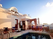 我是真的超级超级满意。虽然整体是看着比较小的民宿。但是也有带游泳池(虽然我不用游泳)。然后房间是公寓那种,还是两层楼。楼下是客厅,厨房和厕所。楼上是卧室和阳台。虽然木有在悬崖边上,但是也就在悬崖边上隔了一条马路。晚上在阳台上看看日落,喝喝小酒,那感觉真的太棒了。对了,老板还有送一瓶酒,虽然我不懂酒,也觉得不好喝,但是还是觉得满满的幸福感。然后还有很丰盛的早餐,可以在自己公寓门口的桌子上吃。想想太棒。 但是住在imerovigli的一个问题就是交通不太方便。但是貌似这家店离车站比较近。然后也可以租车之类的。所以如果觉得交通问题不怎么care的真的太推荐这家店了。貌似酒店是分前后两栋楼的。我们住的是前面这栋。一共有三间房