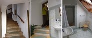 店则是由一栋曾经是城市碉堡的建筑改造的,据于桥头重地,这里曾被用作储存武器和火药,可以见其地基相当坚固,同时又能俯视伏尔塔瓦河(Vltava river)的美景。顺着弯曲的楼梯就可以进入“碉堡”的腹地,第一次入住这种“错层”的房间,宽敞的洗手间,洁净、明亮但又私密,很是招人喜爱。