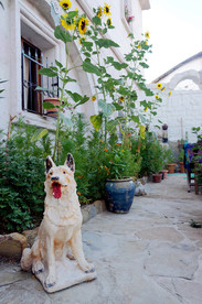 在卡帕多西亚怎能不预定洞穴酒店,选择很多,之前看过穷游上“傻冒林”的攻略中有介绍到这家,感觉不错,BOOKING上评价都很好就选择了这里。 10小时的夜巴伴随着星星抵达格雷梅,竟然没有人下车,孤零零的在凌晨四点抵达镇中心,只有一家旅社中介亮着灯,店主随意攀谈了两句,询问了所住旅社后说给他10TL可以开车送过去,就也算一下被宰经历了,其实这家离镇中心很近,走路也就五分钟吧,竟然要10TL,我也不了解情况就答应了,刚上车没坐热就说到了,很是郁闷。。。 伙计住家都在睡觉,没忍心打扰,把行李放在门口的长椅上就进屋去公共淋浴室洗澡先,忙忙弄弄到6点蒙蒙亮的时候,开始漫天热气球,一个小兴奋顿时忘记了夜巴赶路的疲惫,开始拍照,好几个热气球飞的距离旅社好低好低,篮子里的人看的一清二楚,上面的人向我挥手微笑。 旅社的院子打理的也很漂亮,店家种了很多扶桑花(可能是。。)和向日葵,一大早是旅社的伙计起床了,和他说是住客,预定了今天这里,可惜他不懂英文,直接去准备早饭了,过了半小时等来了店主,也是家庭经营式,爸爸和儿子十分热情好客,还特别幽默,尤其爱和各种住客攀谈,每个人都会被父子俩逗乐,店主让我先去吃早餐,没有等到可以Check in的时间,有住客退房就打扫好就可以提前入住。 父子俩也很有生意头脑,和每个住客攀谈后就开始宣传自家的预定景点等业务和晚餐预定,我也定好了晚餐,一起聊天的黑人朋友打趣的和我说,你现在知道他是什么样的人了吧,哈哈。 值得一提的是虽然他家的晚餐比之前之前吃的同等的贵一些,但是味道也很不错,是儿子的妈妈做的,总之凭着父子俩的幽默好客,还是值得的。走之前的送到机场也是预定他家的,统一价格都是一个人20TL,到开塞利机场的哦~到点后一辆小巴来每个旅社挨个接人。