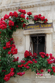 Canyon位置很好,算是半山腰,可怜半拖半抱着沉重的拉杆行李箱,好容易才爬上了Canyon View的阶梯,。Canyon就在著名的K家(Kelebek Hotel)旁边,而K家那个夸张的露台游泳池(卡帕地区缺水,这里的高级酒店也少有设置泳池)也和Canyon的庭院紧密相连,毫无阻隔,使得Canyon的客人可以直接走过去使用这些设施,呵呵,我喜欢这种毫不以邻为壑、乡里乡亲的感觉。Canyon家拥有无敌景观大露台。在格雷梅,要是你的酒店没有大露台,那简直都不好意思开口招揽客人。 与K家的做大不同,Canyon是一间家庭经营式的小客栈,由Unsal两兄弟及他们各自的老婆经营。除开旅店以外,哥哥赛义德(Seyit)还是热气球飞行员,弟弟穆斯塔法(Mustafa)则当带团导游,总之都是靠山吃山为世界各地游客们服务的。客栈本身原来是一家人的住宅,共有6个房间,分别是主人的夏屋、冬屋以及马厩、鸽子房、储藏室和一间酿酒屋,如今全都改建成洞穴房间接待游客。我们4个人入住了最大的“马厩”套间,共有里外两个房间、两个卫浴间,三张单人床和一张双人床,可以住5个人呢,每日价格270里拉(约合860元)。 住在这样有几百年历史的山洞里,虽然不至于发思古之幽情,虽然头顶的石洞还会在你未察觉间洒下一层薄薄的粉尘(不知道别的洞穴房间有没有这种现象),但总的来说,感觉还是蛮浪漫的。