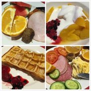 地理位置:就在老人村里面,非常著名的小木屋。因为行程改动,这天的住宿到很晚才订,前一天性价比超高的那间早就订不到了,整个城里像样一点的住宿基本被订光,这两间属于捡漏,但是酒店很恶心,提供预定的只有带小孩的套餐,而且当场扣款不退,没办法,晚起的鸟儿只能高价买虫子吃了。 设施与卫生:如果不跟前一天的比,小木屋条件还算可以,卫生不错,带桑拿,除了空间小一点,厨房设施差一点,其他都过得去,但是性价比实在不高。 早餐:品种很丰富,晚一点吃的话绝对可以当午餐。
