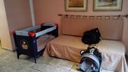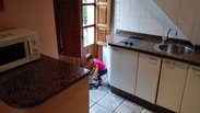 卧室里居然并排摆着四张床(下图中最右角落的那张没拍进来),加上客厅那张可以当床用的沙发,以及婴儿床。我们一家三口住进有七张床的房间,这旅店也真是太太大方了!不知道是不是因为旅游旺季尚未到来......套间内有厨房。我们欧洲行的第一顿DIY的饭菜就从这里开始。这家旅店的格局与装饰是西班牙安达卢西亚风格。