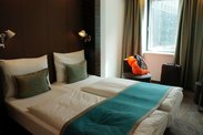 维也纳酒店:motel one wien westbahnhof 价格:€86/晚 点评:位于维也纳的西火车站(Westbahnhof)交通枢纽和购物中心内,地铁U3和U6号线在旅馆内也有停靠站,机场巴士站就位于旅馆外面。酒店房间不大但是格局合理,房间主色调有偶大爱的孔雀蓝。所有房间成“回”字型环绕排列,运气不好的话房间会离电梯比较远,需要绕圈前往。酒店前台是24小时的,在门外还有舒服的沙发座可以等车。