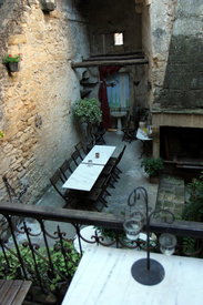 在Remoulins预订的古塔酒店bize de la tour。快到酒店的时候,我给店主Pierre打了个电话,一个十分热情的法国绅士。他站在酒店门前迎候我们,还带着我把车停到一个私家停车场。路上他跟我说,这个酒店是11世纪建造的,17世纪的时候重新装修过,然后现代化改造一下,就成了现在这个样子。