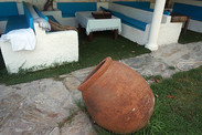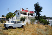 在塞尔丘克汽车站东北方向的小山顶上,面对汽车站左手边走一段路,一直到路牌上指示往徐林杰方向后右拐,不过老板都会来车接的,不用自己找去,因为拖着行李上去的话会很累,好几个坡都是快70度的感觉了。 好像是德国人和加拿大人合开的旅社,自己的院子改造的,很温馨舒适,老板都是帅哥= =!有独立游泳池和小庭院,三层的样子,房间基本都是朝向山下和对面古堡的,所以视野非常好,站在屋子的阳台上就能俯瞰这个塞尔丘克小镇,真的很享受。 缺点也是有的,是我此行住的旅舍中空间比较小,设备比较不全的一家,空调开40分钟就停了,导致晚上不能开空调,有点影响睡眠,厕所很小,基本转身都会碰到墙,如果不介意住宿环境的还是可取的,比较景色很美。 早餐中等吧,比较简单干净,旅舍还养了三只长的一模一样的小狗,走哪跟哪,很可爱,庭院里有只大海龟。。。 退房的时候老板不会主动说送你去汽车站,但是自己拖下去真的很累,走之前询问一下,我这次比较幸运,还有两名华人旅客也退房要去汽车站,老板一辆车一起送过去了。 付款用里拉会划算一点,不过我们算了一下,价格其实差不太多,但是老板都很希望你付现金,而且是里拉哦~~