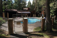 在MammothLakes,订的酒店是meadow ridge condos by mammoth slopes Lodging——booking上的最后一间。本来是考虑一直在外吃,这家酒店提供厨房,可以自己做点菜调剂一下。等入住后发现,这家酒店是整个旅途中最划算的一家——联排木屋,有厨房、客厅、餐厅和三个卧室,阳台可以远眺Sierra Nevada及山脚下的度假别墅,别墅区内还有游泳池,非常适合多个家庭一起来度假。含税价不到360刀,远比裸心谷超值。每个木屋标配2个停车位。别墅区里的游泳池,虽然不大,但很干净,只对住客开放。