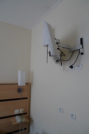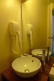 这间饭店也很好找,搭上地铁一号线转五号线到Jacques Bonsergent站就到了。进门之后,觉得这间饭店很不错,虽然楼层的通道及入口很窄,不过巴黎的饭店大多是这样,也不以为意。入口就是衣柜。厕所大致干净,算是基本配备。不过在巴黎住这两间旅馆的吹风机,长都都很像吸尘器,连启动的声音都很像~ 而床旁有个简单的书桌椅,算是非常的朴素。以这里的位置,九十二欧算是物有所值。顺带一提,房里的无线网络非常的快。这是最大的好处。隔天早上用早餐的地点,有分户外及室内区。户外座位蛮雅致的,但巴黎的早上蛮冷,没有房客坐在外面用餐。但户外的座位看来也很不错,色彩很缤纷。虽然简单,但是不论是面包还是咖啡,还是让人无法挑剔,美味极了~