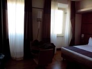 酒店的入住时间是14点,我原先以为提前1~2个钟头去问题不大,但是前台美女和我说我要的有阳台的房间还没打扫完,要我等,或者让我把行李留在他们这里我们可以出去先玩,我不放心最后要了间没有阳台的房间,小小遗憾~~ 真不懂为什么打扫个房间还要几个钟头呢,这效率!! 房间还不错,25平方外加特长的床(说是超过2米哦),还有胶囊咖啡机,外送一天两瓶水San Benedetto的,最重要的是干净,与之后的几家酒店比起来这家的确能给4星!