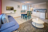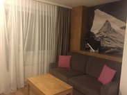 优点:自助式公寓,共上下两层。空间大,适合四人同行。一楼是超大的客厅和厨房和卫生间,厨房用具齐全,上面是两间卧室和洗手间和淋浴室。可以看到马特洪峰。 缺点:火车站出来要走一段路,办理check可以在前面的威斯汀酒店也可以公寓门口刷卡自助办理。设施有点陈旧但收拾的比较干净。对于瑞士来说,算性价比比较高的。