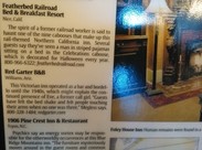 浓墨重彩说说我在威廉姆斯的住宿!!!进威廉姆斯小镇,正考虑哪里能停车,就看见右手有个公共停车场,拐进去准备搜住宿地,抬眼正对着这家红色吊袜带旅馆,是个B&B,含早餐。名字很香艳,二楼窗台上还有个女人模特,招摇的姿势。看到有空房间的霓虹灯,进店。店里很多好玩的卡片和各种物件,瓶塞很有趣,大腿大胸倒着。问房间,最小的加税不到80,房间照片都挂在墙上,可以挑选。看到照片超喜欢,住。 女店员很能聊,一点一点介绍情况,怎么吃早餐怎么用钥匙,走哪个门怎么注意安全,这种私家旅馆不是酒店,所以要听明白。因为一楼大厅是蛋糕房加礼品店,晚上会关门,住店客人要从大门边的侧门进出。 我问这个楼是不是老房子,女店员说差不多有120年了。沿着狭窄陡峭的楼梯上二楼,总觉得有点诡异气氛,房间布置老派精致又暧昧,床高的快到我腰了,上床靠爬,下床靠蹦。所有用品都很讲究品质,有点小奢靡的味道。早晨还在汽车旅馆,晚上就换了口味,长途旅行总得有时候奢侈奢侈,犒劳犒劳自己。楼上就几个房间,我来的时候都空着,这大晚上我一人住这老房子里还真有点怕。女店员说有两个房间预订的人还没来。 早晨下楼吃早餐,看到桌子对面墙上挂着一个镜框,走近一看,妈妈呀!这里是美国十大闹鬼的住宿地传说是一个叫Eva的应召女郎。有人说晚上会觉得有人摇床,还有人触摸手臂。我问店员是哪间屋子,说是1号房间。我TM昨天住的是2号,就在隔壁!店员说你很幸运哦昨天上楼,没人的房间都开着门,我还跑到1号房间拍了张照片!早餐看到两个男的离店,又看到一对夫妻吃饭,幸亏昨晚不是我一人住这楼里,朋友在微信里开玩笑说你是女的没事。这个店的logo就是Eva。当初是酒吧和妓院,这房间得有多少缠绵往事啊!现在想想,这样的经历也不是常有,还挺有意思的。 最后一张照片就是1号房间,是个套房。当时门开着我就进去拍了一张,总觉得有点诡异,拍完就跑出来了。