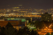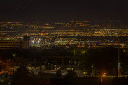 晚上9点半终于天黑了,窗外可以看到盐湖城的夜景,非常漂亮,忍不住架起三角架开始对着窗外拍夜景,可惜窗户不能打开,拍的夜景都有窗户的反光。