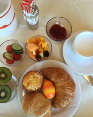 酒店外观。注意,由于格林是丘陵似的地形,所以酒店离火车站有一段是上坡路,拖着行李走上去略累。房间推门出去就是梦幻山坡喔!可以直接走下去~那天下雨烟雾缭绕也是超美啊~房间内部,床头有摆巧克力,很好吃~酒店早餐,鸡蛋是不是很有特色。