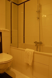 酒店就在艾菲尔铁塔附近,走路约五分钟远,晚上回hotel时都可以看到闪闪发亮的艾菲尔铁塔,超值得。Hotel对面就是Metro Bir Hakeim(6号线)、旁边是RER Champ de Mars Tour Eiffel(C线),交通非常方便。早餐要每人加价,好贵啊!所以我们都到外面吃或是买面包果汁回来吃。其实在外面吃不如在hotel吃,价格没便宜多少又得冒着寒风出门。买面包果汁的确是便宜多了,但有很克难的感觉,只能说小两口依偎着吃冷冷的早餐也是一种幸福吧! 房间很干净,有自己的马桶、浴缸及淋浴设备,有附洗发洗澡用品,没有牙刷牙膏。房间很~~小,房里放了张床外就没什么空间放行李了,我们共有两个背包及两个登机箱,放完只能在房里跳来跳去行进了,后来把包包箱子全迭到衣柜里(也是几乎贴着墙壁的小)才解决房内空间问题。但是在我寻找巴黎hotel的过程中发现,大家很常抱怨房间很小,但最后又都会自己写一句说「我知道那是巴黎饭店的特性」,所以也没什么好挑剔了吧!