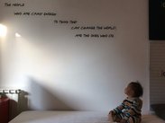 每个房间就是个小户型公寓。厨房卫浴设施齐全。房间内有洗衣机,没有自带洗衣粉(液)可以找前台购买。这家公寓很贴心的准备了婴儿床,以及小礼物。我们check in后,前台还送来两杯波尔多葡萄酒以示欢迎。写在床边白墙上的乔布斯名言:那些疯狂到以为他们能够改变世界的人才能真正地改变世界。公共区域视野开阔。参观波尔图市内的景点都是步行可达。旁边是一处警察局,住在这很安心。
