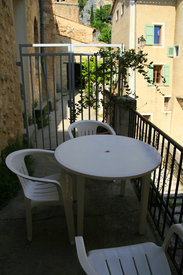 Le Relais 此程最满意的一次住宿 90欧 3人间。套房,一张双人床和一张单人床,套房,有两个卫生间,还有一个小小露台,那带花边的水蓝小窗帘是那么的梦幻。而且楼下就是自带的餐厅,餐厅坐落在桥边,在窗台边吃饭,脚下就是湍急的瀑布,鸟语花香,凉风习习,这才是生活。