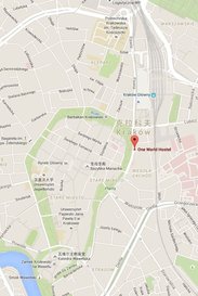 位置离火车站/汽车站走路5分钟,火车站有商业中心吃快餐便宜,有中餐快餐。过街就是老城,走路到瓦维尔城堡15分钟,到犹太人区25分钟。