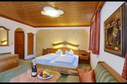 伯格马特酒店明显大气精致胜过周围的任何一家宾馆。白墙上绘制着精美的湿壁画,露天阳台点缀着娇艳欲滴的鲜花,独特的花园餐厅和木制的前台,无不体现出与平原地区不同的山间度假风情。打开门,房间里的挂墙收音机里飘扬出悦耳动听的德国古典交响乐,与窗外的自然风光相得益彰。两米宽的大床正对着露台,山景牧场一览无余。房间里还陈列着壁炉、吧台和沙发座,若是一家人来此地悠闲地度上多日假期,倒可以好好享受一番。
