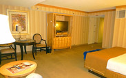 入住Strip 上的 Bally's酒店, 进门先要穿过巨大的赌场才能check in。从没见过酒店入住客人这么多的,排了一个半小时队才办好。房间超大,还给加个儿童床,才50刀。