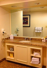 巴利拉斯维加斯酒店是拉斯维加斯老牌的酒店之一。和其他酒店一样,他的1楼自带硕大的赌场。在赌场的旁边,是各种餐厅,日料、墨西哥菜、美国菜任君挑选。他的位置离机场不远,打车约10几刀,加上消费不到20刀,相比10来刀一人单趟的shuttle,还是打车来的合适。 综合评分:4.5分 酒店优点: 1.房间大,非常之大,卫生间都自带门口小厅的。我们的房间是1206A,那么相应的应该也有1206B,我们注意到,房间里有2扇门是锁住的,门打开应该能和隔壁组成更大的套房。 2.交通方便,从机场到酒店10几分钟,酒店位于拉斯维加斯大道边上,步行2分钟即可到达繁华的拉斯维加斯大道,要知道大道的夜景也是拉斯维加斯的一大特色呢,来玩的朋友不容错过。 3.饮食方便,这里有丰富的餐厅供人选择,并且有些餐厅出现在trip advisor的推荐上。我和ff团子第一晚吃了墨西哥菜,第三天上午在旁边吃了大汉堡,我第一次知道美国的汉堡居然还有不要面包可以单要内容和菜的。看上去和沙拉差不多。 4.酒店可以看show,这也是拉斯维加斯的特色,不同的酒店有不同的show常年进驻。Ballys有Jubliee,ff团子之前去看过,所以我们这次没看,不过ff团子是比较推荐的,认为这种topless的show在另外地方看不到,也是一种独特的体验。 缺点:1.毕竟是老酒店了,设施各方面比较陈旧。
