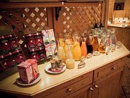 地理位置:优秀,火车站出来延左边马路走大概5-10分钟就能到达,,更难能可贵的是酒店直面群山,风景迷人,如果要从酒店到镇中心,需要上坡走10分钟。 免费WIFI:全酒店均可连接,速度比hotel sonne快,看网页,玩网页游戏都可以,无法看优酷,网速不是很稳定,有时候房间内信号较弱,无法上,但这种情况不多。 拖鞋:无。咖啡机:无(有烧水壶)。吹风机:有。早餐:含在房费中。 推荐指数:★★★★☆ TIPS: 如果你要定这间酒店,一定要事先和酒店说明要能看到山景的房间,LG之前看网上照片,误以为我们定的浪漫间就是可以直接在阳台上看山景,其实不然,我们这间在酒店的背面,此乃一大缺憾。另,酒店没有电梯,不过我们入住时前台大叔很热情的帮我提了箱子上去。 酒店性价比较高,类似家庭式经营,内外均可见主人的悉心布置,处处是小景。此外入住时还会拿到welcome card,贝希特斯加登当地公交免费,BUS840去萨尔兹堡优惠。特别想说一下他们家的服务,我们入住当天CI后准备出去逛逛,先去向前台大叔咨询了早餐桌对面的山峰和国王湖的有关信息,结果大叔很慷慨滴送了张地图给我们,之后当我们走到酒店大门口时发现外面下着雨,大叔匆匆拿了两把伞出来。原来他看到下雨,想到我们要出门就为我们送伞过来,着实令人感动。 房间只能说一般了,面积较小,家具为典型的巴伐利亚木质风格,床品一般,用的布料较粗,可能有些人会有点不习惯,提供的茶包卫浴用品之类的也都比其他酒店要少。