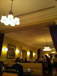 酒店位置不错,交通很方便,走到市政厅广场就几分钟,这是雅高旗下的酒店,隔壁还有间宜必思,酒店建筑应该是有些年份的,房间层高极其高,很有特色,设施谈不上豪华,甚至在同等星级情况下显得略微简陋,但因了连锁的缘故,各方面都是中规中矩的,不论从服务还是从早餐质量,都基本没有什么可以抱怨的。 我们的酒店位于市政广场附近,交通很发达,当然深夜里是看不出什么的,唯一让我一眼瞅见的,便是酒店对面那家有着大大KB字样的银行,这下不用担心换钱的问题了。酒店前台看来已经恭候多时,不用我过多言语,已经把事先准备好的资料摆上了台面,简单的签字核实,交代早餐时间地点,便笑着跟我们道晚安了。 酒店建筑一看便是有些年头的,高高的走廊边挂着一些黑白老照片,让人忍不住揣度这里曾经的用途,迈进房间的那一刻,不禁被那几乎有两层楼高的窗玻璃给镇住了,房间虽不豪华但却也一应俱全。 酒店的餐厅很有东欧范儿,早餐也相当丰盛,服务生都是很养眼的帅哥美女,可惜负责煎蛋的帅哥完全无法交流,最后我只得自己上手示范才让他明白我想要的是双面煎。 (文字和图片来自我的游记《『深秋·出走布拉格』》)