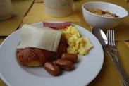 优点:古城里的老房子,干净、整洁、民宿味道很重的小旅馆,所有服务人员都是意大利大妈,有种住宿在意大利人家里的感觉。推窗出去,对面就是民居,很有生活气息。地段非常非常中心,走出去5分钟就是锡尼奥里亚广场,10分钟就到圣母百花大教堂。去任何景点都是步行范围。早餐有个小院子,挺温馨的。有免费WIFI。 缺点:房间设施比较老旧,相较于价格偏贵了。没有电梯,我偏偏还在备注里写了HIGH FLOOR,结果人家给了我一个阁楼房间。可怜的我们提着行李嘿咻嘿咻的爬到楼顶啊!另外,这个旅馆到火车站的距离有点尴尬,算算拖着行李大概要走半小时,最后我们还是打车了,很短一段路15欧,被宰了。对了,还是没有被子,只有毯子。 总结:我对这家的感觉还不错,挺有亲切感的意大利小旅馆,算是蛮有特色的。就是价格不便宜,信价比不太高。