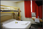 Ibis本来已经是经济型的连锁酒店,再加个Budget,可想而知设施有多简陋了,我们住的Family room,房间里除了一个大床,一个高低床,和一个狭小的浴室,就没有别的家具设施了。但位置特别好,在Elizabeth大街靠近Collins Street的地方。这也是为什么很多穷游的人喜欢选择它的原因,就这样的酒店一个房间每晚也要一百二十多澳元,墨尔本市中心住宿真是贵呀。