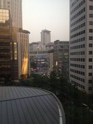 平壤威斯汀大酒店, 地点很好。 我开始奇怪为啥叫平壤朝鲜威斯汀不是首尔威斯汀,,,原来酒店有100念历史拉!!!!酒店地点很好, 对面就是明洞。乐天免税总店就在隔壁