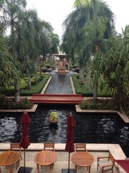 华欣只住一晚,不能亏待,订了华欣凯悦酒店 Hyatt Regency。位置不是很好,距离华欣市中心有一段路。环境倒是不错,门口就有周末市场,可惜没能赶上。 进入酒店大堂,非常气派,面向海滩,在大堂吧等候,还有welcome drink。正好碰到越南泰国的一个大型会议,服务人员明显不够,Service 有点跟不上Hyatt的名号。从房间望出去就是泳池,酒店泳池很大,有滑水道,家庭带小孩来的很多。 凯悦的私有沙滩也是不错的,但是如果非酒店住客应该也可以毫无阻挡的走进来吧。躺下就有人送来毛巾包裹的冰水,享受啊~