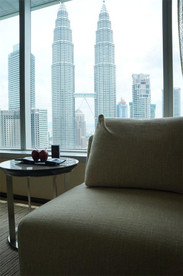 Traders Hotel Kuala Lumpur,属于香格里拉旗下的五星级酒店!服务真的好得没话说!注意:(CHECK IN是在五楼哦)。我们特别预定了正对着双子塔的豪华双人房!真的好正~酒店很细心,知道我们是度蜜月的还送了小蛋糕!各人觉得外观很漂亮,内里很甜!