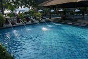 Grand Hyatt位于巴厘岛的东南端的Nusa Dua,那里聚集着巴厘岛最多的豪华酒店。只是离开中心城镇和各景点都比较遥远。 房间面积不大,酒店的硬件设施、自助餐等和比国内五星级好象还略差一点,但环境绝对一流,随处可见花草、池塘、泳池像河一样蜿蜒。酒店私人的海滩很干净,岸边有免费提供浴巾和冲沙处。 但是一个很不习惯的是由于巴厘岛的天气湿度很大,房间潮湿,放在房间中的衣服和被褥都是湿湿的,很不舒服。