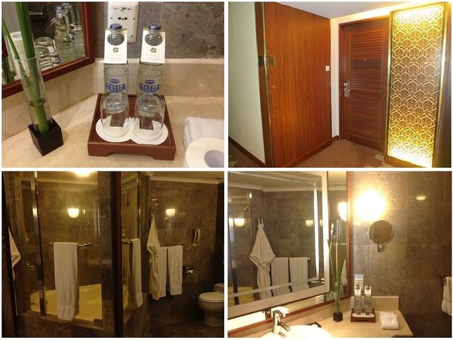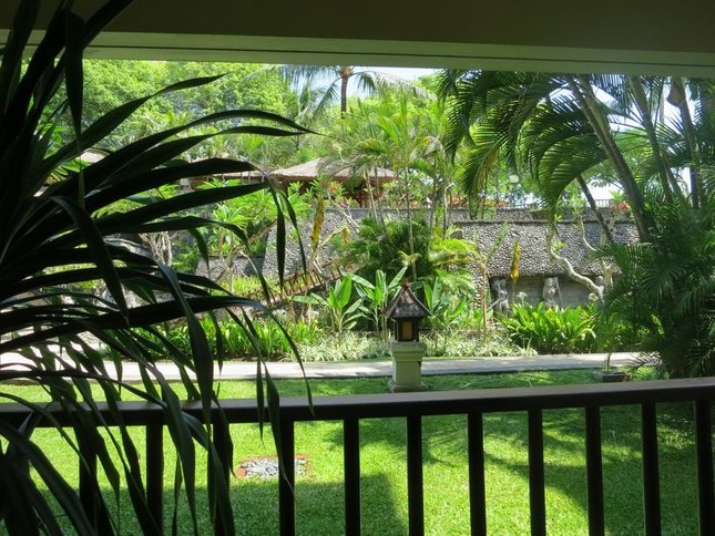NUSA DUA地区是高级酒店区域,相当于三亚的亚龙湾,我们选择了网上人气较高的THE LAGUNA RESORT SPA(拉古娜酒店),去时发现很眼熟,好像在亚龙湾见过,后来一想,亚龙湾的应该就是巴厘岛的山寨版,这是原版了。房间还是蛮漂亮的,每天有一盘水果,卫生间有大大的三角浴缸,阳台看出去就是热带美景,位置好的能看见泳池。