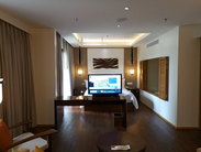 这家度假酒店从各方面来说相当完美,在这里给一个满分。酒店位于兰卡威北部丹绒鲁海滩,与四季酒店挨着,拥有自己的海滩。酒店面积很大,配有3个室外泳池,3个餐厅,还有运动、spa等各项设施。作为一家resort,确实实至名归。感觉在酒店内部就能玩上一整天。 到达以后,迎宾会将你的行李直接拿到房间,前台接待在中庭里。旁边的工作人员会给你提供周边跳岛游和浮潜等一系列活动。办理好入住后,前台会把你带到房间,向你介绍房间的各种设施以及酒店的各种设施。行李随后会由迎宾帮你拿到房间里来。整个度假村的房间并不多,只有寥寥的几幢,并且没有高层,没有电梯。前台很nice的帮我们把房间升级了。800多块钱,享受了一个60-70平方米的大套间。