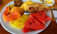 酒店的免费自助早餐~炒蛋味道不错,菠萝超级甜~木瓜的外皮很像芒果,但是其实是木瓜~早餐可选性挺多的,咖啡牛奶麦片炒面面包什么的也都有,我只是拿了自己喜欢吃的而已~