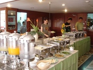 *位置—位于曼谷市中心Pratunam区,附近有Central World、伊势丹、 ZEN 等综合商场,离大卖场BigC超近,和水门市场、著名的四面佛也很近。 *交通—邻近捷运 Siam站、Ratchadamri站、Chit Lom 站,走过去大约都要10~15分钟。平常走路都还好,如果是拖着大行李的话,还是会觉得远~~从机场坐小黄到这附近,大约是200泰铢左右(不含过路费)。 *房间—其实饭店很老旧了,不过我自己是觉得还算干净。该有的都有,如果不太计较的话,以价位来说是还不错。但是房间一定要选面大街或是5楼以上。我们这次被分到4楼刚好正对SuperRich的背面顶楼,我想伸手就可以摸到他们阳台了,所以不但没有view,也觉得好像都会被别人看到~~ *早餐—早餐是自助式的喔,以一晚1000多元来说,有自助式的早餐算不错了。有美式、中式、还有稀饭、水果、饮料等。