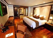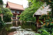 酒店距离华欣市中心还有一定距离,所以我们委托酒店帮我们定了出租车,花费为2000泰铢,后来也证实,这是最好的办法,路程花了将近3小时。店是非常传统的泰式风格建筑,葱郁的绿色让人马上想“开胸”洗肺。 我们的卧室主打环保风,全木质结构,没有传统的化学洗漱用品,只有纯天然物质制作的洗漱用具,包括肥皂,沐浴液,洗发水等。有蚊帐哦,说明这里有蚊虫出没,不过没关系,来之前都买好了泰产驱蚊液。房间外同样有很宽敞的露天阳台,不时吹来的阵阵海风打在外面的椰子树沙沙作响。阳台上休憩的沙发床好宽敞! 酒店的泳池就毗邻大海,算是对我们没有能在海中扑腾扑腾人的慰藉吧。泳池,人多,但依然清澈见底。整个泳池呈不规则状,分儿童泳池和成人泳池。不少外国孩子在泳池里嬉戏。酒店的凉亭安逸在绿色丛林中,如果不想一天在房间里发呆,这里也是不错的选择,看书听音乐,还有鸟鸣的陪伴。 酒店是阁楼设计,一共二楼,住二楼就是为了能看到海,但还是被外面茂密的椰子林给遮挡掉了,变成只能听海,另一种意境。呵呵。 昨晚委托酒店预订的出租车一早就来了,酒店知道我们行程后,特意为我们每人准备了一份早餐,打包放在冰柜里,确保保鲜,真的非常细致周到和体贴。泰国的服务行业确实没得说!