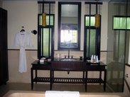 优点: 货真价实的5星级酒店。酒店房间分别在酒店主楼和别墅两个区域。 我们免费升级到了别墅房。四周热带植物环绕,房间很大,还免费给小孩加了床。带室外泳池,室内浴缸基本上也可以当泳池用了。 服务态度很不错,见面都主动打招呼,当然也有个别冷淡的。 自助早餐是西式的,品种很丰富,住了四天,大部分品种都没有变化。 去沙滩步行5分钟。沙很细很白,但浪比较大,不过在沙滩上玩玩水还是可以的。 出正门左转,或者从沙滩方向的门出右转,有一条商业街,餐厅,地方特产,水果铺,超市都有。但和巴东的繁华没得比。 缺点: 空调有的吵。我们晚上是开风扇睡觉的。 别墅一楼有点潮湿,连点蚊香的火柴都划不着。可能和下雨又关系。 房间入住的第一天有蚊子,后来点了蚊香,就没有了。 有个37‘液晶电视,可惜没有中文电视节目。 没地方晾衣服,每次出游回来衣服都汗湿了,洗完没地方挂。 上网和打市内电话要付费。 交通问题,去普吉镇和巴东都要专门打车,300铢。交通费不便宜。
