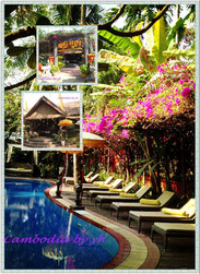 酒店位于河东岸,客房布置比较简单,但透露着浓郁的柬埔寨风情,庭院里满是热带的绿树红花,一个不小的泳池,一步一景。一个标间一晚只需36.8美元(含早),性价比极高。