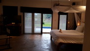 清莱比起其他城真是价廉物美,所以也就土豪了一把,住了个villa,每晚价格差不多2000港币。酒店国庆只有5家客人,河岸的餐厅里只有我们和另一对老外夫妻,放着让人食欲大增的爵士乐,霎时有土豪包下整个庄园的感觉。villa后院有私家泳池、秋千和自己的河岸,好清幽。