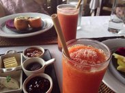 这家酒店就是我来巴厘岛的第一个原因!好笑的是,最后一晚,我们几个酒店的客人聚在吧台聊天,发现大家全是看到了这家酒店才决定要来巴厘岛。我是在看到了论坛里贴子才觉得一定要来巴厘岛的。 由于lovina的沙滩都是深色的火山灰和大海的泥沙混合而成的(从LP上学到的),所以海上的娱乐项目除了看海豚和浮潜外,没有什么娱乐活动。因此住在山里是完全ok的。 这家酒店的餐厅也是当地非常有名的,每天都可以看到慕名前来的游客-要在天黑的时候坐车上山走3km,真的是要多出名才能吸引来。晚餐略微有些贵,人均要rmb 100多,不过量给的非常足,他们宣传的是所有食材都是自己种植生产的有机食材(望望后山头,这种话就。。。没必要撒谎了,很容易就。。有机了)。不过早餐的量真的很大很足,两天早上吃撑了大陆早餐和美式早餐后,我在临走的时候选择了日式。。。又撑了。 我想大概是因为lovina闲适安静的环境,加上又住在深山里,这里的客人都非常友好,只要你语言ok,很容易交到朋友-而不象金巴兰的客人都恨不得躲起来不相见。你可以随时看到泳池里原本是陌生人最后熟络到乱开玩笑的人,加上这里的蓝天、美景、美食和完美的服务,真的是一个世外桃源一般美妙。