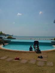 入住Twin Bay Resort,酒店不错,前面的沙滩很宽广平坦,水里基本没石头,适合游泳。不过游泳的人不多,靠近沙滩的那几排小屋,大家都在躺着晒太阳看书。这个酒店前台是个美国人,估计就是老板吧,典型的美式做派,人很随和,很随意,酒店管理风格也很美式,最起码他告诉我泳池是24小时开放的,其他的酒店,泳池可不是24小时的。入住的都是独立屋子,屋外的平台上都有躺椅,靠近沙滩的贵一些,我们入住的是不靠近沙滩的屋子,在一个小林子里,也很不错(这个岛上的酒店,不像Ngai岛,没有提供晾衣服的架子,我们就在平台的两根竹子之间绑了凉衣绳,内衣、泳衣、泳裤啥的,晾晾,我们不是没素质啊,周围老外都这么干,再说,就算是花钱送洗服务,你好意思让别人给你洗内衣吗)。 自助早餐还不错,每隔一天,还有沙滩BBQ,酒店基本都是欧美人,而且都拖家带口,一大家子,少则三四个,多则五六个的,带的小孩,有的才几个月大。(PS:发现一个有趣的现象,国人带着孩子,基本上小孩都是上学了的那种,最小也是上幼儿园了,老外,不管多大,都带出来,有的明显就几个月大,爹妈就胸前一个兜子给兜出来到处玩,吃饭的时候,有的家庭,大人饭桌上吃饭,小孩就干脆扔沙滩上,自己光着屁股在那爬。更绝的是,第二天的一岛游,浮潜时,也是那么大的小孩,就躺在父母胸前跟着下海,那可是深海啊,还有一家子羡慕死我了,大女儿也就是幼儿园的年龄,跟父母带着浮潜用具下船浮潜,被海水呛着了,妈妈就是笑着说,it's ok,告诉女儿怎么用,小儿子才几个月,嘴里咬着奶嘴,坐在气垫圈圈上,被爸妈推着,一点事没有。